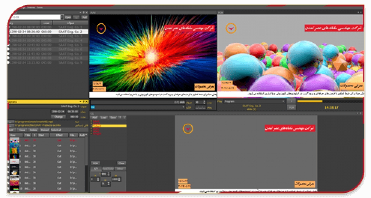 PlayRec (Playout/Recorder) systems, which support broadcast standards and SD/HD/4K qualities, record the pictures and play them. SAAT Co. has designed and produced SABA PlayRec for the above purpose, SABA Playout for playing playlists, and SABA Playlive for playing input streams.
