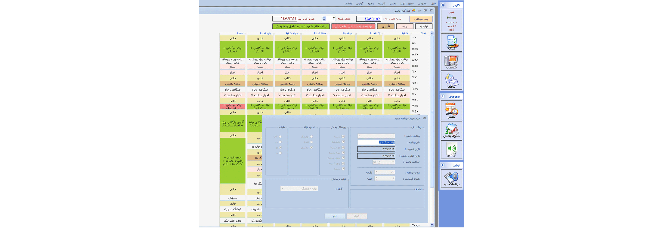 Some features of this system are: various user facilities, automated workflow, proper access levels meeting requirements of users, accomplishing all activities by one computer with a simple user interface, and sending alarms and messages. Because of its modular design, it is suitable for a small radio station or extendible for a large radio station.