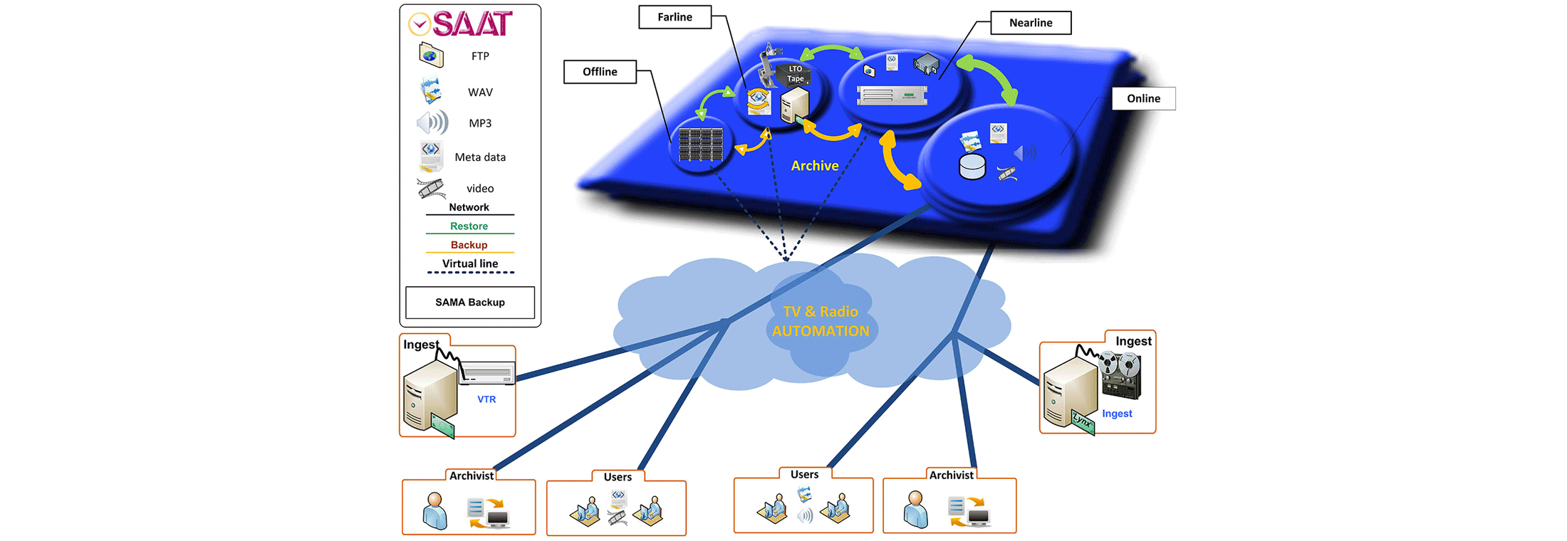 Although digital magnetic tapes are sequential-access devices and are not as fast as magnetic disks, they have been used as archive media for a long-time and safe preserving of unlimited digital data. Accordingly, Backup system is produced for institutions and organizations that, in particular, deal with audiovisual data.